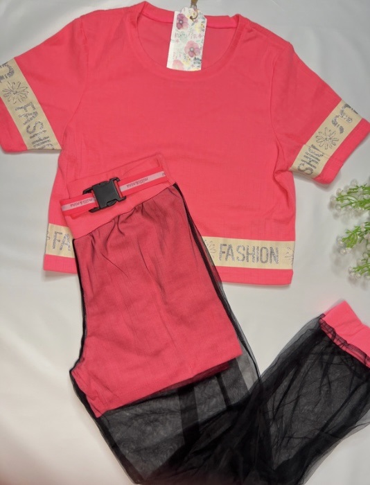 Conjunto infantil blogueirinha calça em tule com short embutido e cropped, tamanho 12.